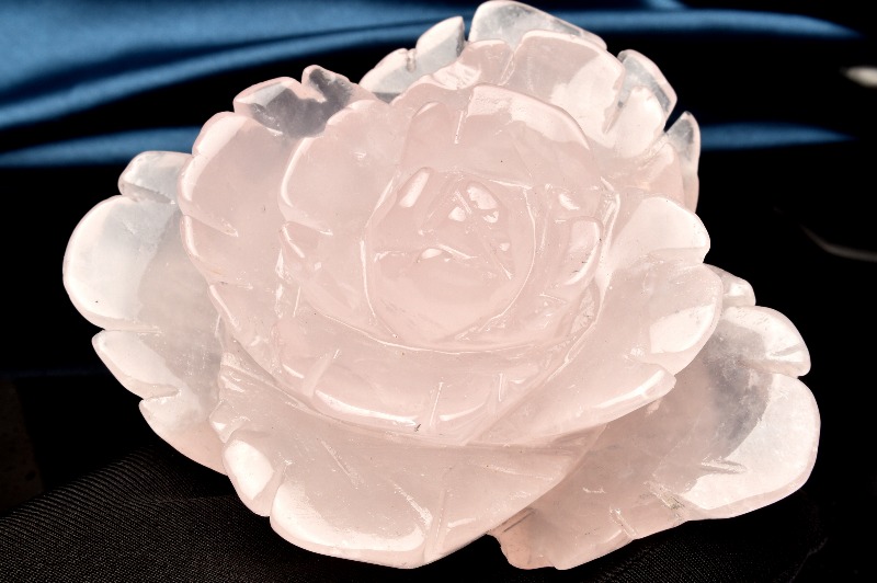 【1点物】浄化におすすめ ローズクォーツ 97x88x42mm 薔薇彫刻 置物 _CG6517【宅急便のみ】