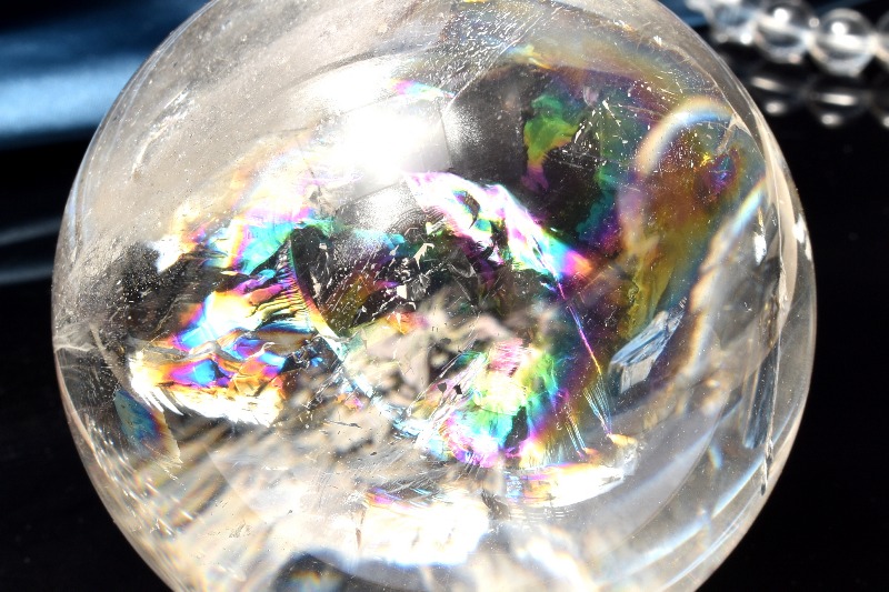 この美しい虹色がなぜ内包されたかというと、地殻の変動や外からの力が水晶に加わることで亀裂が生じ、それが虹色の分散光を放つためとされています。