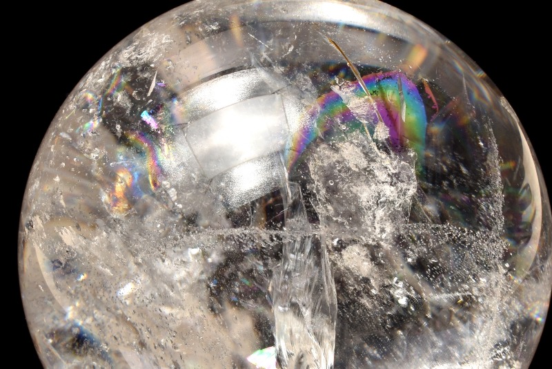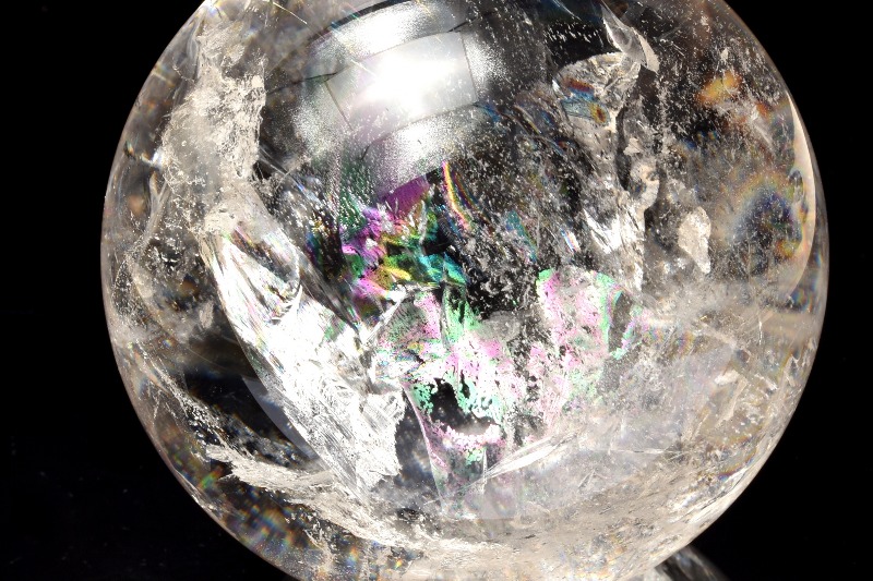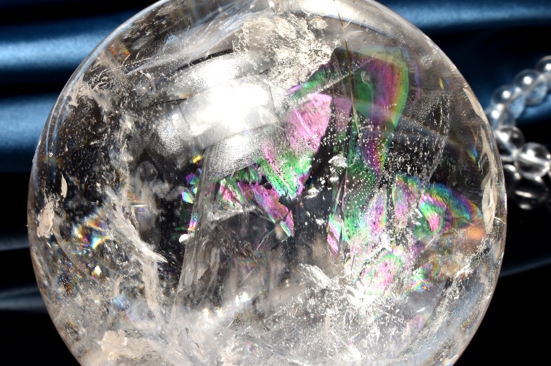 この美しい虹色がなぜ内包されたかというと、地殻の変動や外からの力が水晶に加わることで亀裂が生じ、それが虹色の分散光を放つためとされています。