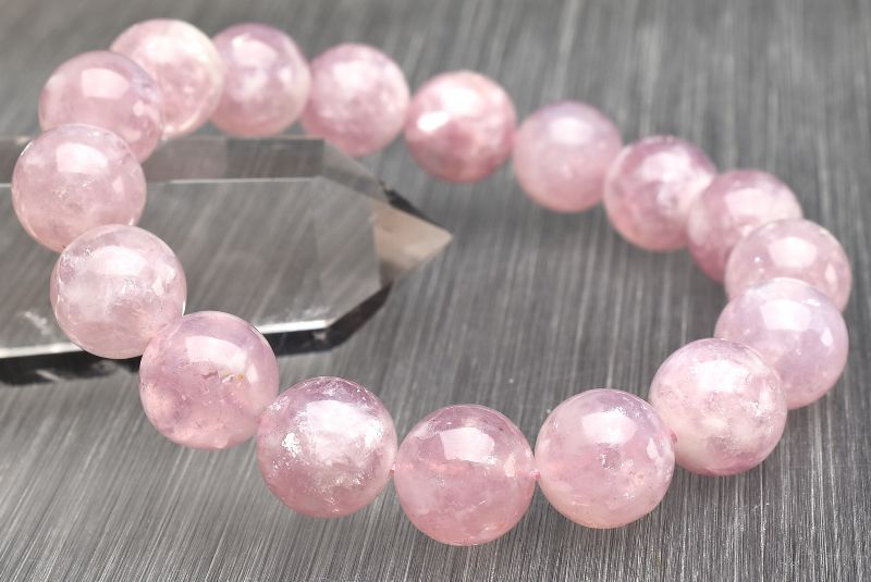 【1点物】レア◇結晶入り ピンクマイカ(レピドライトシリカ) 12mm ブレスレット _U7267