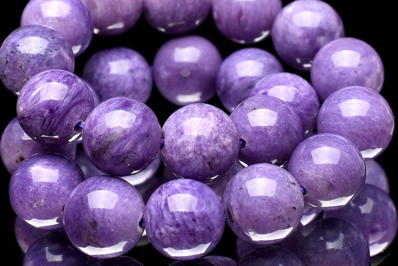 チャロアイトという名前の由来には、シベリアのチャロ川流域で発見された事とする説と、ロシア語の(Charo魅惑)から名づけられたという説がありますが、後者の方が有力であるとされています。その名の通り、この石の個性的な模様は、見る人を魅了してやみません。まさに、「魅惑の宝石」にぴったりな石です。
