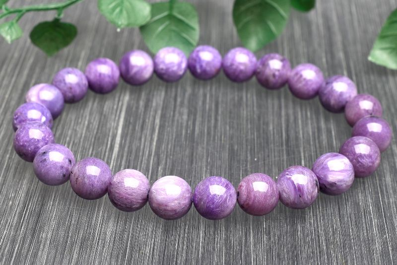 チャロアイトという名前の由来には、シベリアのチャロ川流域で発見された事とする説と、ロシア語の(Charo魅惑)から名づけられたという説がありますが、後者の方が有力であるとされています。その名の通り、この石の個性的な模様は、見る人を魅了してやみません。まさに、「魅惑の宝石」にぴったりな石です。