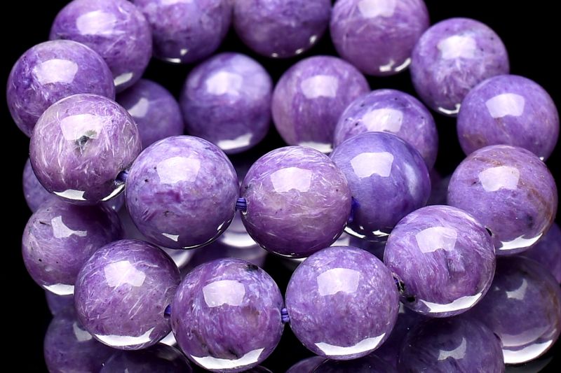 チャロアイトという名前の由来には、シベリアのチャロ川流域で発見された事とする説と、ロシア語の(Charo魅惑)から名づけられたという説がありますが、後者の方が有力であるとされています。その名の通り、この石の個性的な模様は、見る人を魅了してやみません。まさに、「魅惑の宝石」にぴったりな石です。