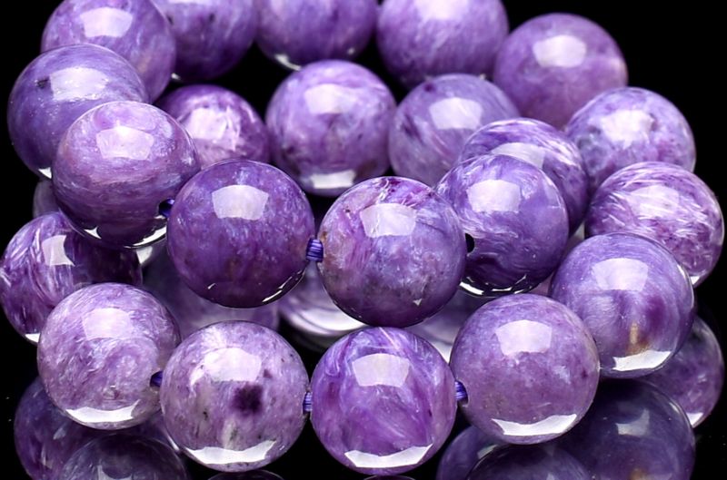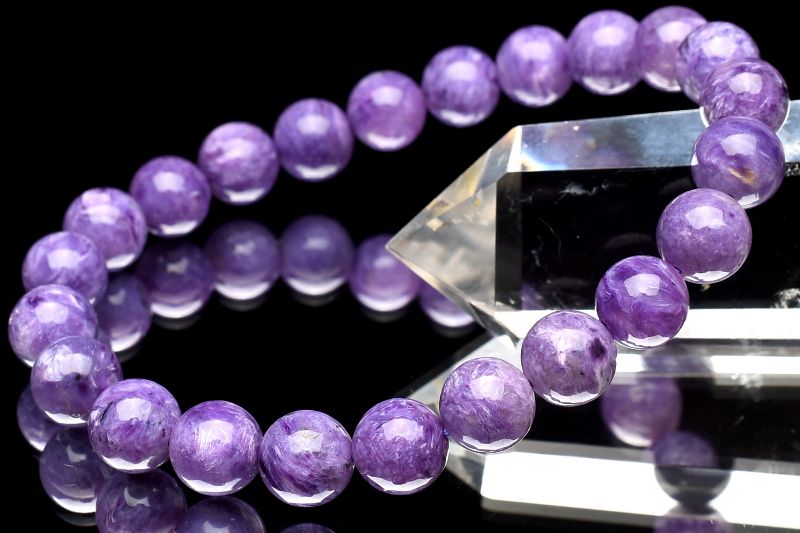 チャロアイトという名前の由来には、シベリアのチャロ川流域で発見された事とする説と、ロシア語の(Charo魅惑)から名づけられたという説がありますが、後者の方が有力であるとされています。その名の通り、この石の個性的な模様は、見る人を魅了してやみません。まさに、「魅惑の宝石」にぴったりな石です。