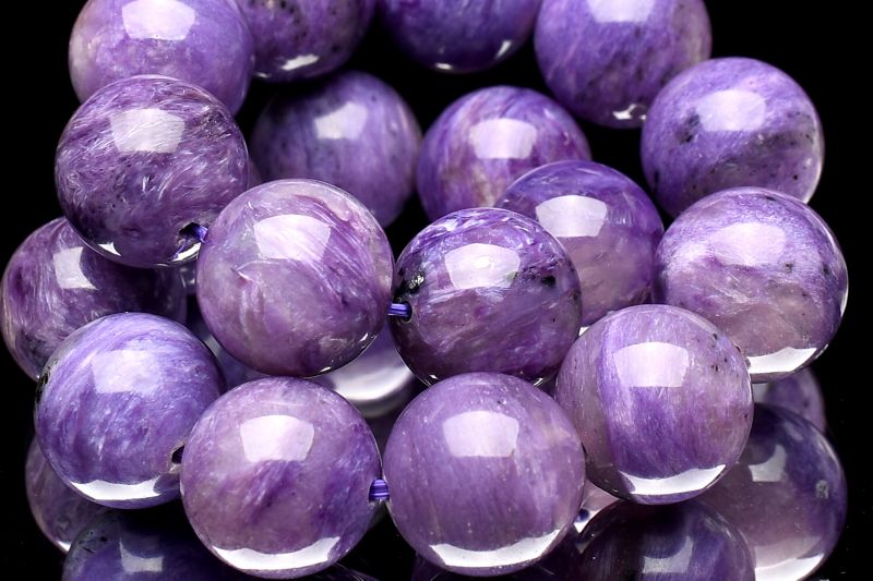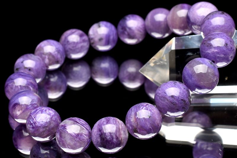チャロアイトという名前の由来には、シベリアのチャロ川流域で発見された事とする説と、ロシア語の(Charo魅惑)から名づけられたという説がありますが、後者の方が有力であるとされています。その名の通り、この石の個性的な模様は、見る人を魅了してやみません。まさに、「魅惑の宝石」にぴったりな石です。