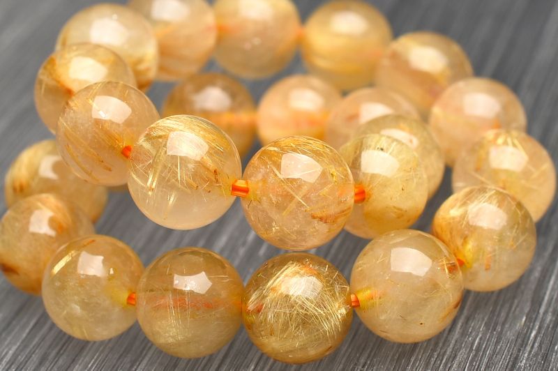 材質ゴールドタイチンルチルクォーツ 7.5mm 産地:ブラジル