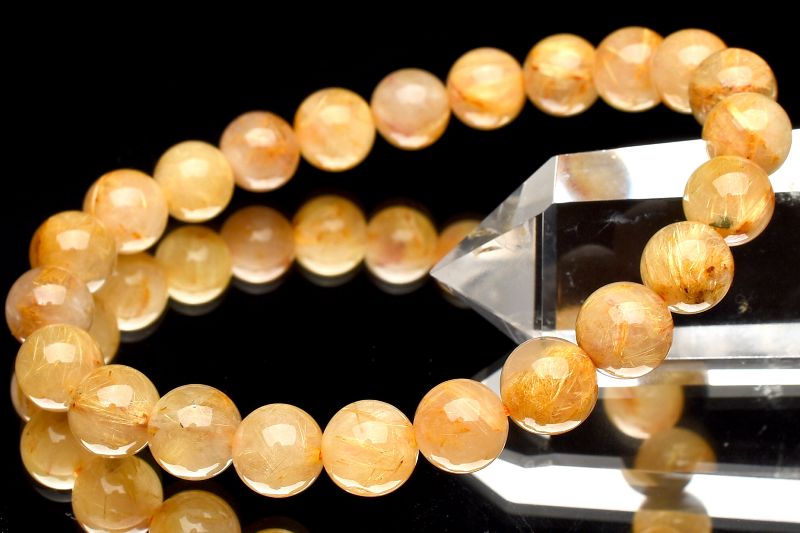 材質ゴールドタイチンルチルクォーツ 8.5mm 産地:ブラジル