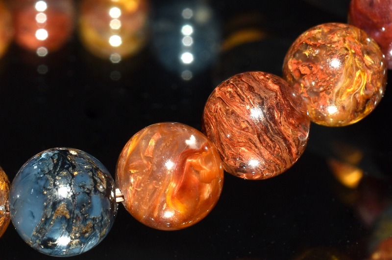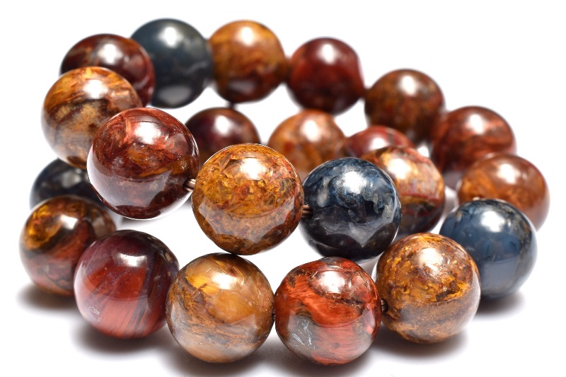 一般的にはタイガーアイ系の茶褐色が多いですが、ブルータイガーの青系もあり、茶と青の混じったものもあります。