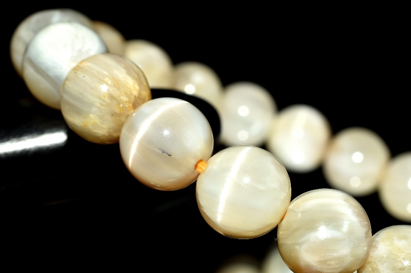 強い光に当てると美しいキャッツアイが浮かび上がる珠もあり幻想的です。