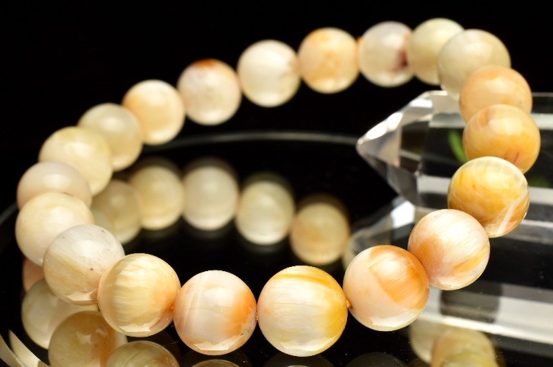 強い光に当てると美しいキャッツアイが浮かび上がる珠もあり幻想的です。