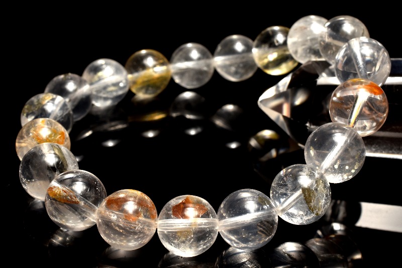 材質ライモナイト&マーカサイトインクォーツ 10mm 産地:マダガスカル