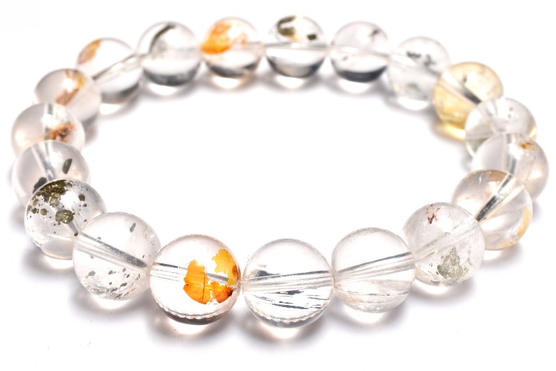 【1点物】希少内包◇マダガスカル産 ライモナイト&マーカサイトインクォーツ 10mm ブレスレット _MA7732