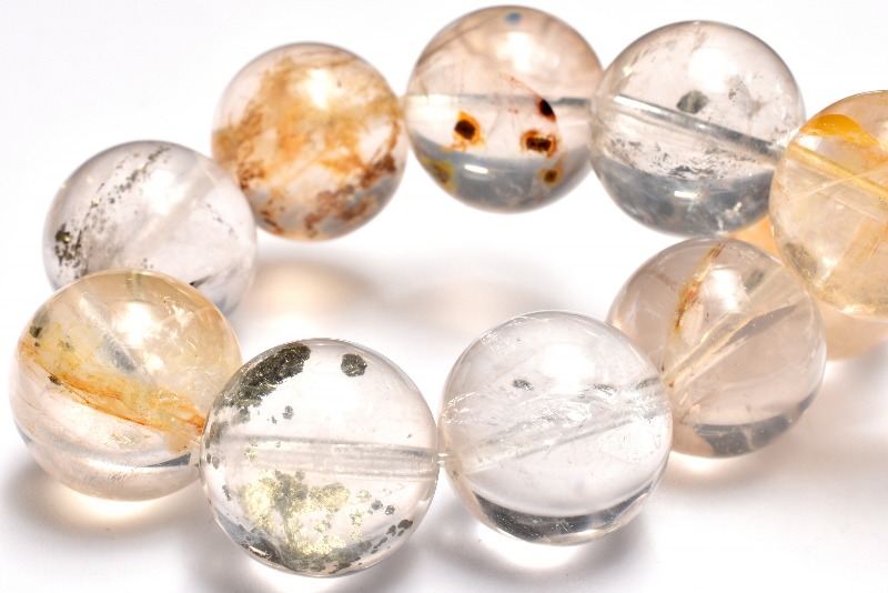 【1点物】希少内包◇マダガスカル産 ライモナイト&マーカサイトインクォーツ 14.5mm ブレスレット _MA7740