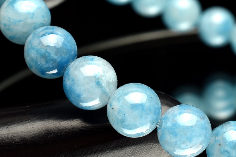 トロレアイトの特徴は、鮮やかな水色と半透明のグレー、白色の内包物の3色で構成されています。