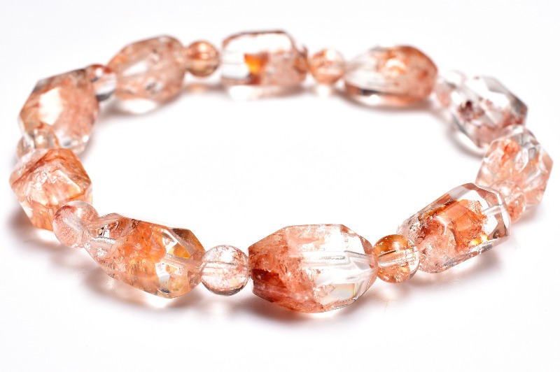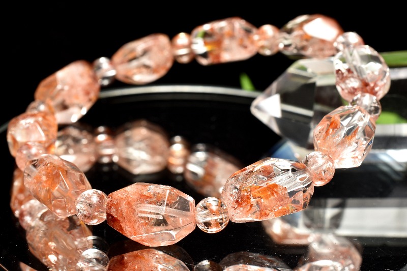 【1点物】高発色◇クリア錦鯉 ライモナイトインクォーツ 13-14x9-10(丸玉5.5)mm 原石ラフカット ブレスレット _MA7763