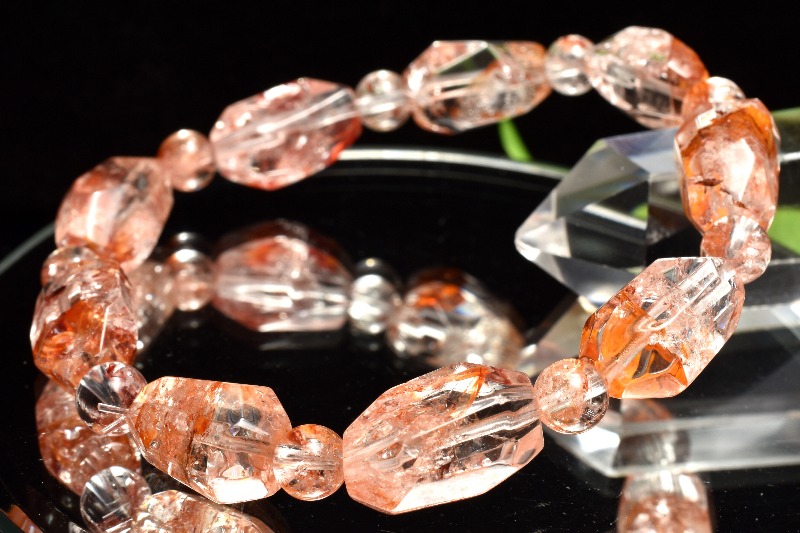 【1点物】高発色◇クリア錦鯉 ライモナイトインクォーツ 14-17x10-11(丸玉6)mm 原石ラフカット ブレスレット _MA7764