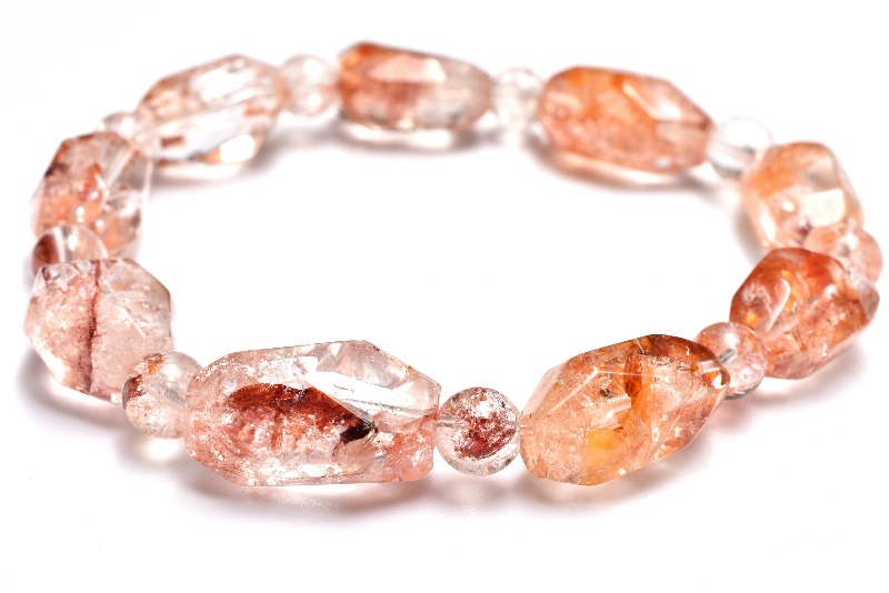【1点物】高発色◇クリア錦鯉 ライモナイトインクォーツ 15-17x9-11(丸玉6)mm 原石ラフカット ブレスレット _MA7765