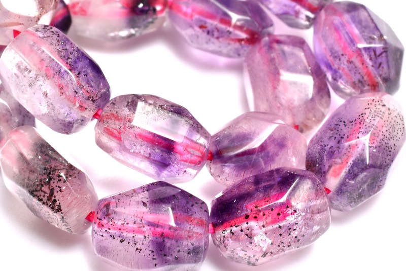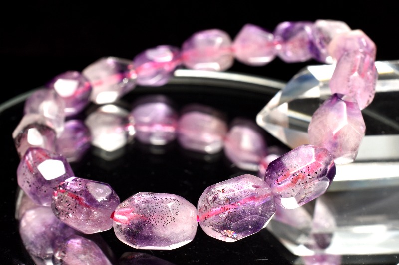 パワーストーンの定番アメジストに、細かなゲーサイトやレピドクロサイトが入っているアメジストスーパーセブンです。
