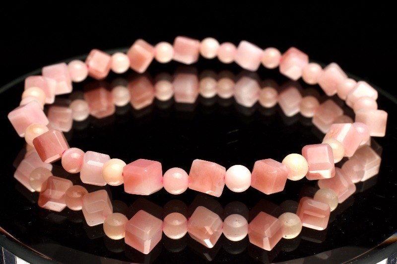 【1点物】高品質◇桜色 ピンクオパール 5.5-6.5x5-6(丸玉4)mm キューブ ブレスレット _MA7878