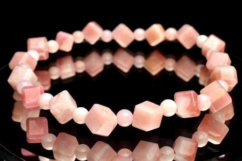 【1点物】高品質◇桜色 ピンクオパール 7.5-8x7-7.5(丸玉4)mm キューブ ブレスレット _MA7883