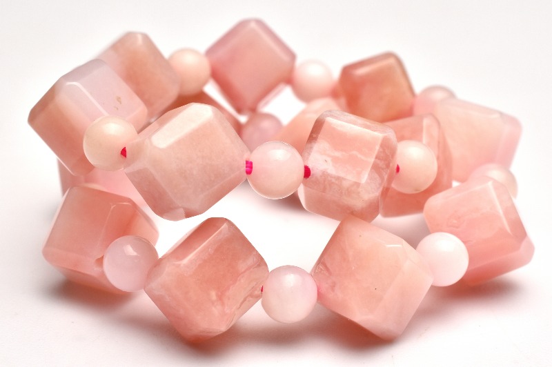 【1点物】高品質◇桜色 ピンクオパール 9-9.5x8-8.5(丸玉4)mm キューブ ブレスレット _MA7884