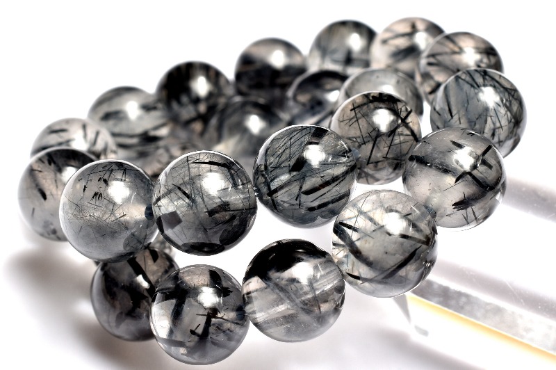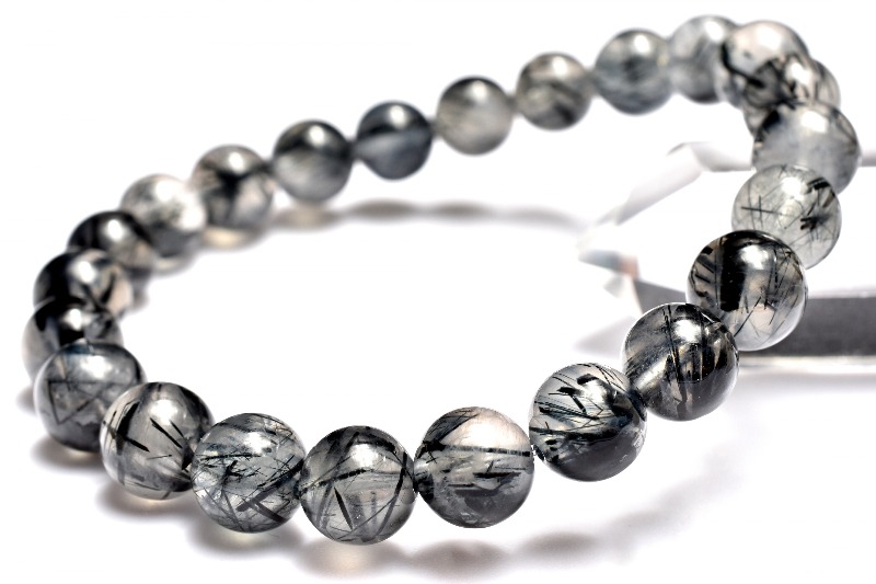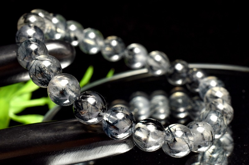 材質ブラックトルマリンインクォーツ 8mm 産地:ブラジル