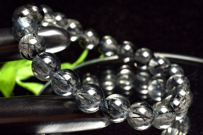 材質ブラックトルマリンインクォーツ 8.5mm 産地:ブラジル
