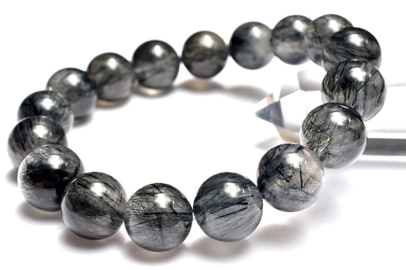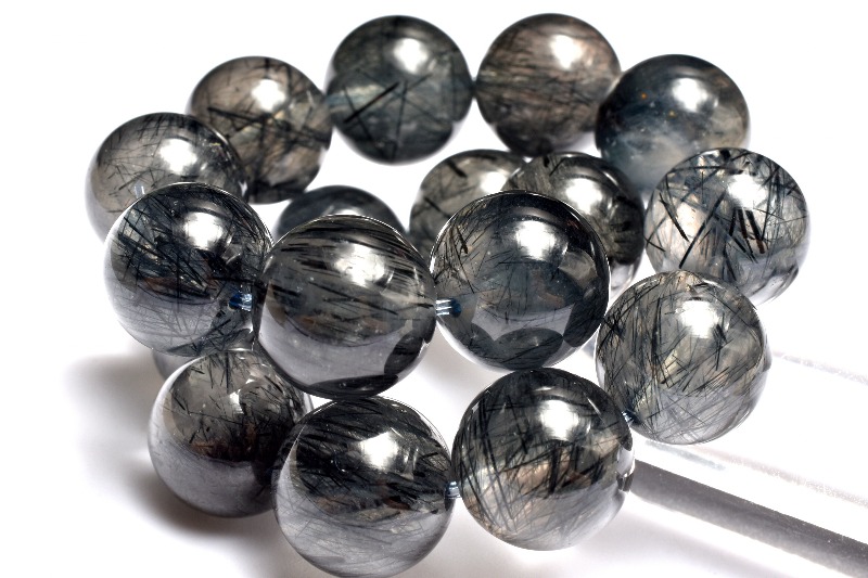 材質ブラックトルマリンインクォーツ 12-12.5mm 産地:ブラジル