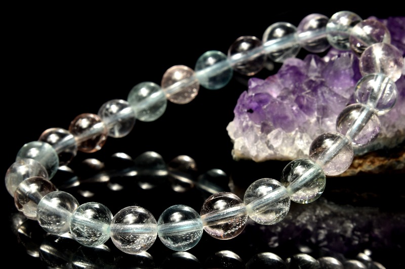 稀に虹入りの珠や、白雲母(モスコバイト)やトルマリンなどの内包物も見られます。