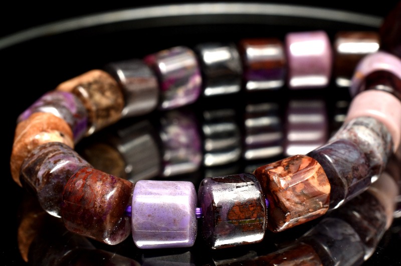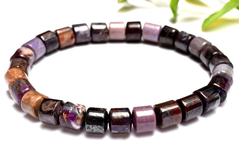 【1点物】高発色◇癒やしの石 スギライト(杉石) 5.5-6x7mm チューブ ブレスレット _MA7996