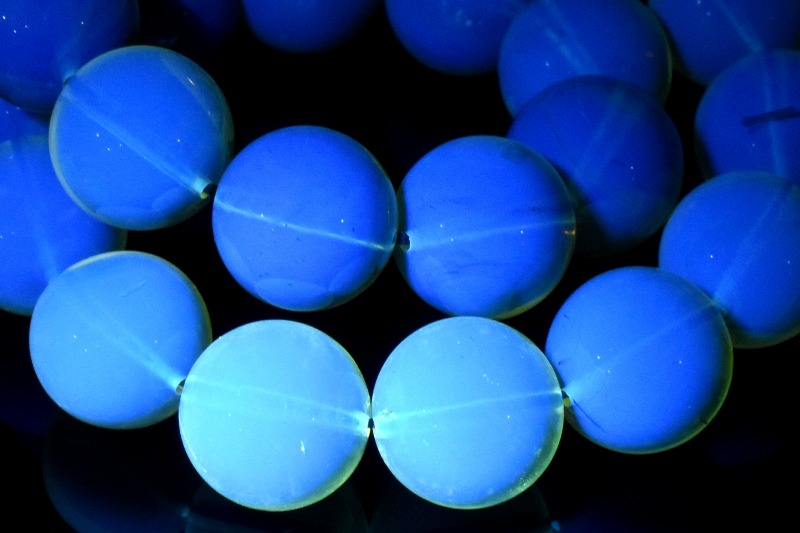 紫外線を当てると透明感のあるブルーに輝き神秘さを感じます。