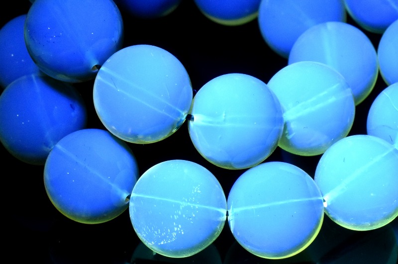 紫外線を当てると透明感のあるブルーに輝き神秘さを感じます。