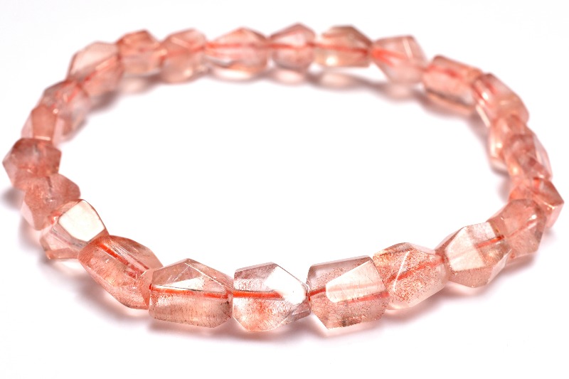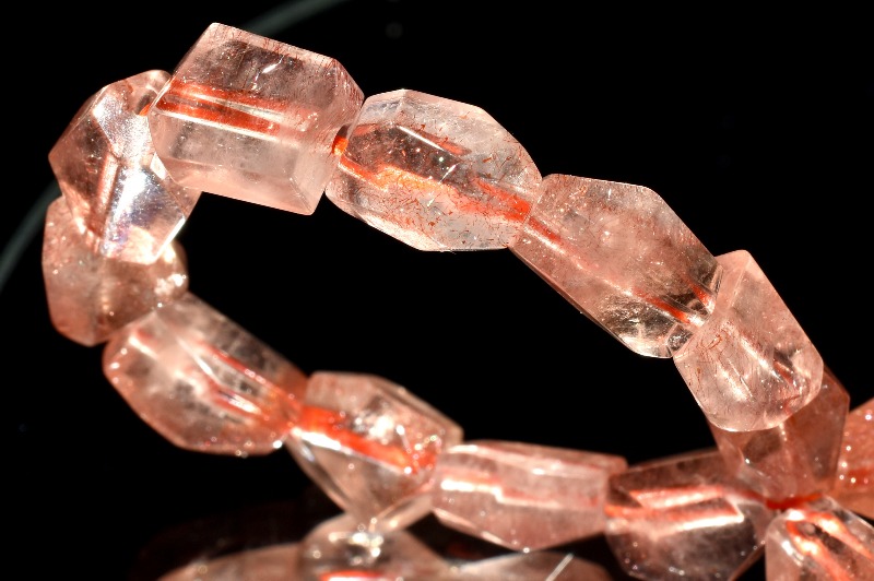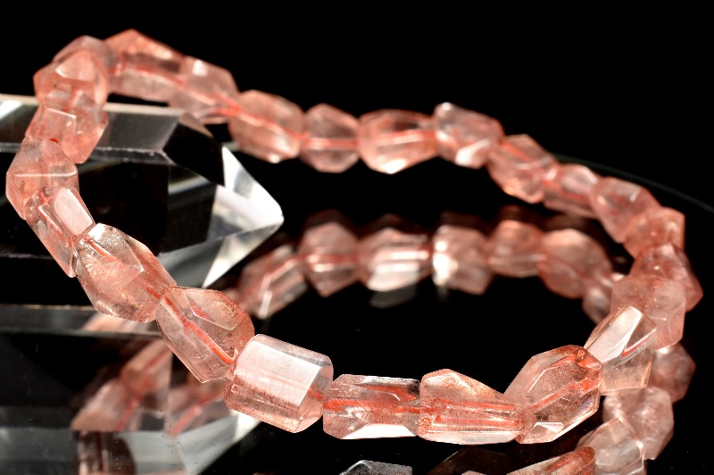 【1点物】5A級高品質☆希少形状 ストロベリークォーツ(レピドクロサイトインクォーツ) 6.5-8.5x4-7mm 原石カット ブレスレット _MA8044