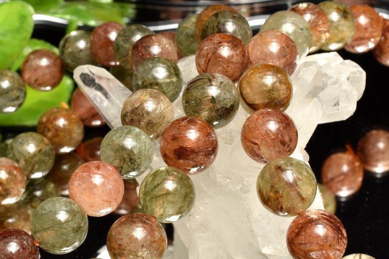 希少カラー MIXルチルクォーツ 13.5mm ブレスレット 1個売り _BG5956-135