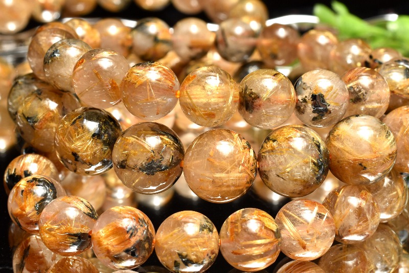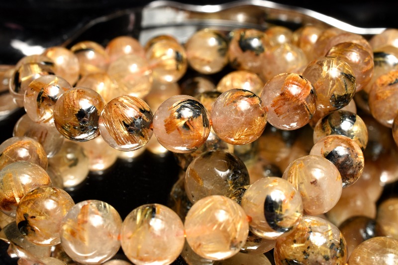 材質ヘマタイトインタイチンルチルクォーツ 7.5mm 産地:ブラジル