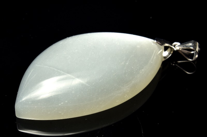 【1点物】Silver925◇ミルキーシラー ムーンストーン 42x24mm リーフ ペンダントトップ _PC5551