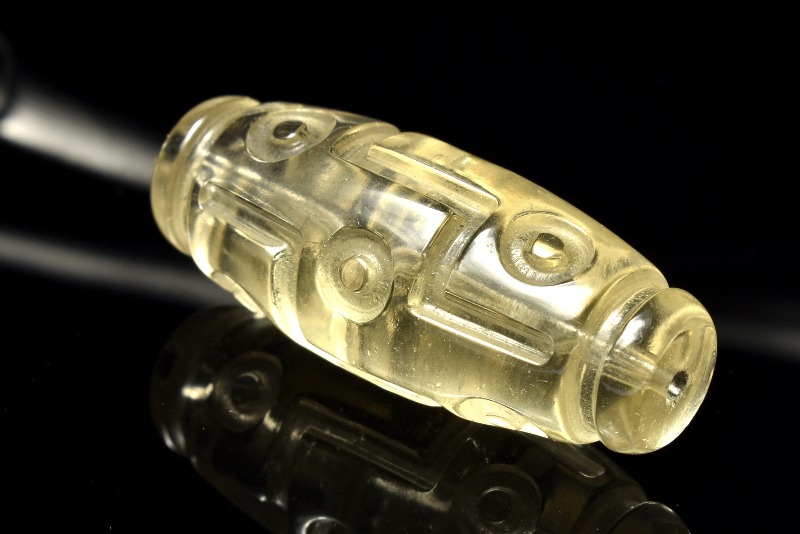 【1点物】AAA激レア☆透明レモンカラー リビアングラス 29x11mm 九眼天珠 ビーズ _PC5605