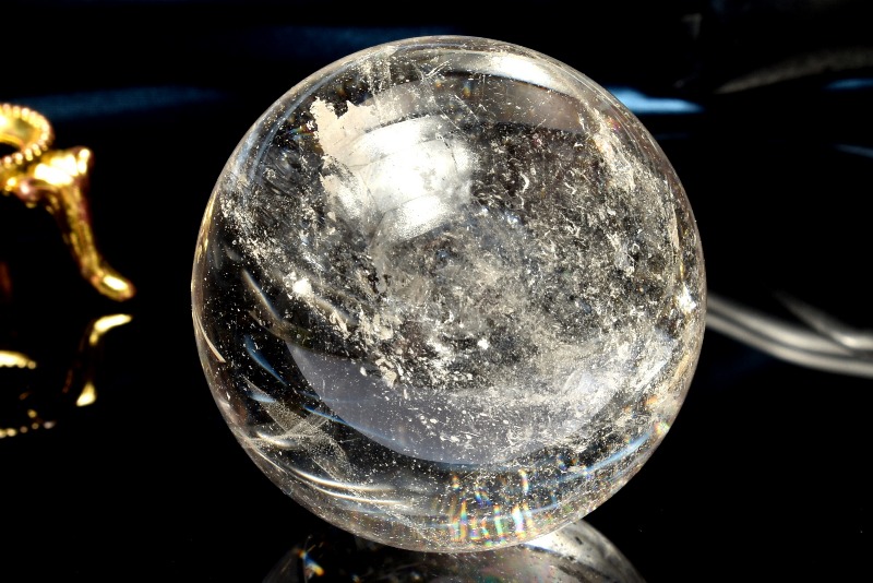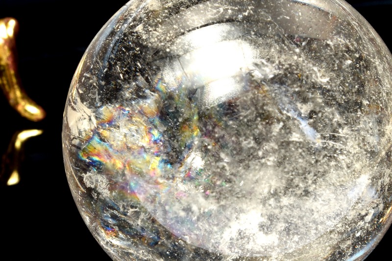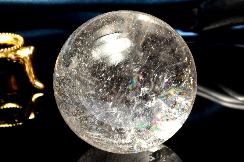 【1点物】虹入り!コロンビア産 レムリアンシードクリスタル 39mm 丸玉(台座付き) スフィア _CG6550【宅急便のみ】