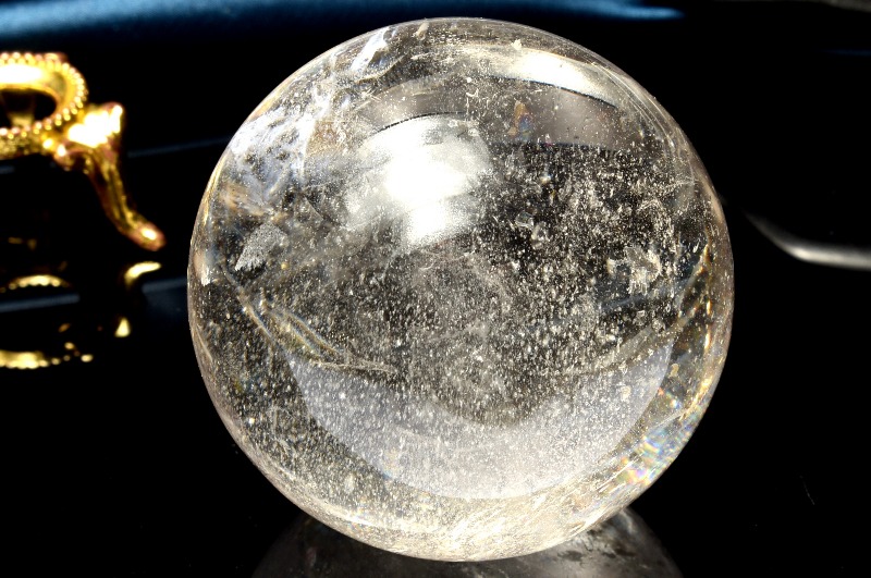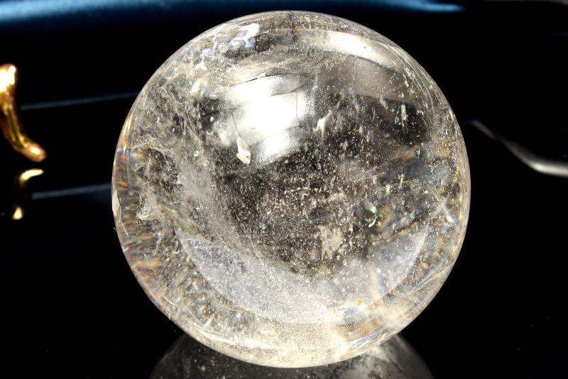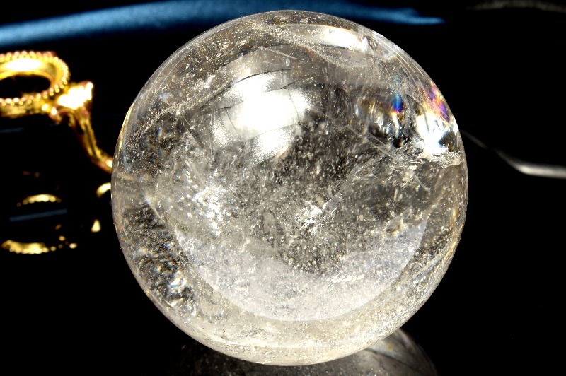 【1点物】虹入り!コロンビア産 レムリアンシードクリスタル 45mm 丸玉(台座付き) スフィア _CG6551【宅急便のみ】