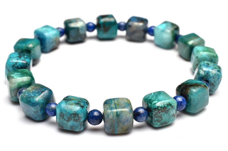 【1点物】シリカ共生 クリソコラ 8x8(丸玉4)mm キューブ ブレスレット _MA8108