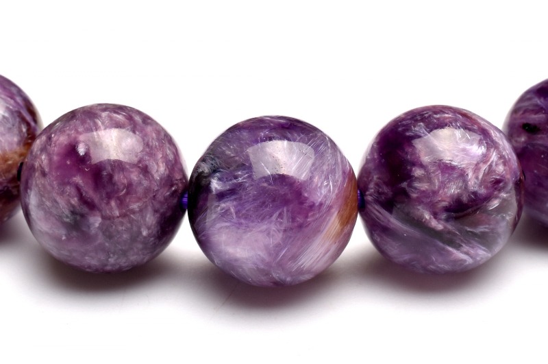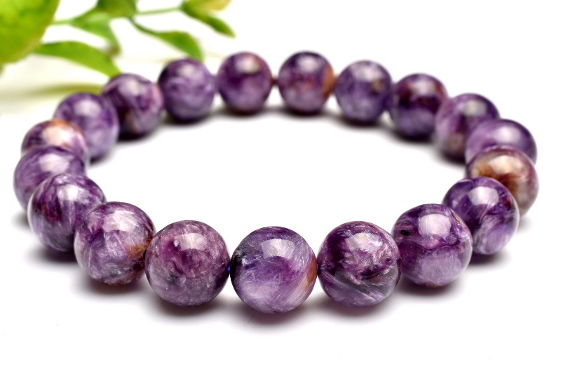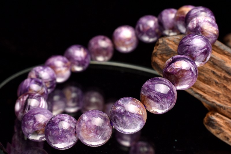 チャロアイトという名前の由来には、シベリアのチャロ川流域で発見された事とする説と、ロシア語の(Charo魅惑)から名づけられたという説がありますが、後者の方が有力であるとされています。その名の通り、この石の個性的な模様は、見る人を魅了してやみません。まさに、「魅惑の宝石」にぴったりな石です。
