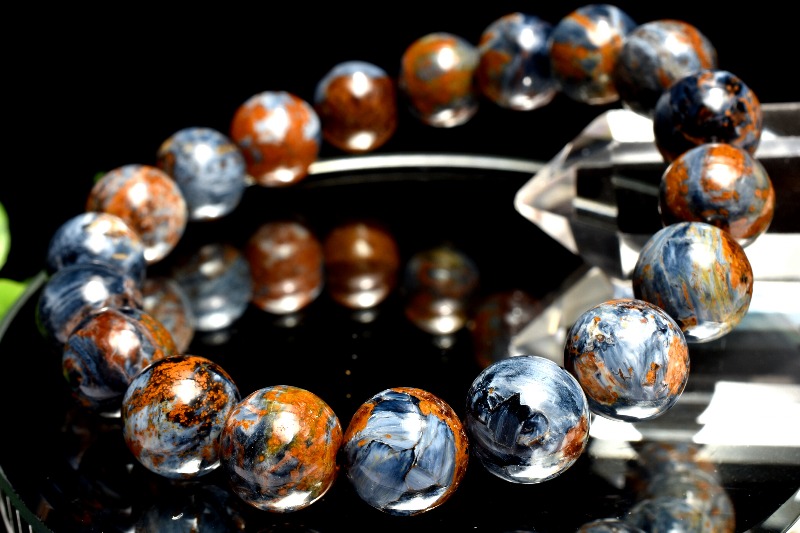 一般的にはタイガーアイ系の茶褐色が多いですが、ブルータイガーの青系もあり、茶と青の混じったものもあります。