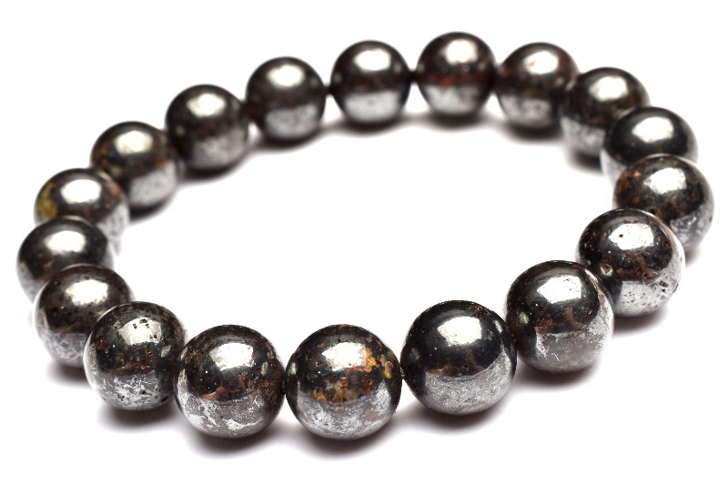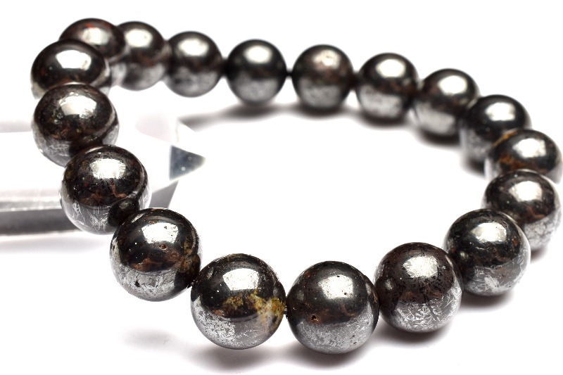 【1点物】サハラ砂漠産 コンドライト隕石(サハラNWA869隕石) 10.5mm ブレスレット _MA8213