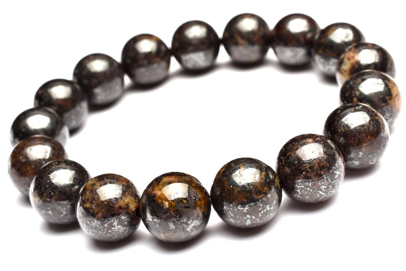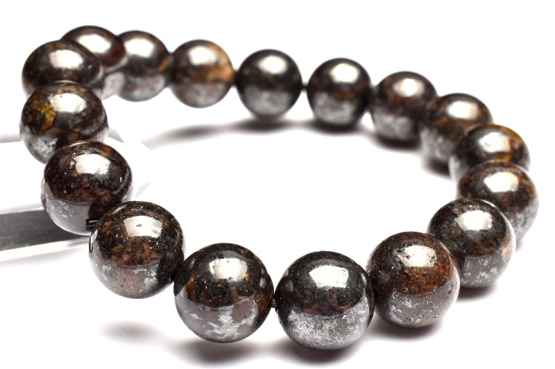 【1点物】サハラ砂漠産 コンドライト隕石(サハラNWA869隕石) 12mm ブレスレット _MA8223
