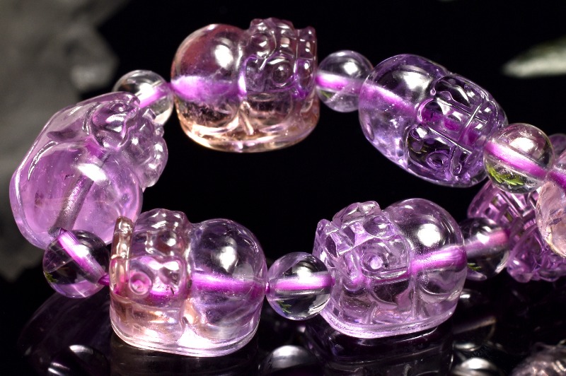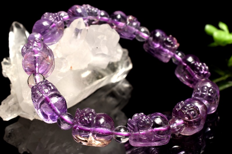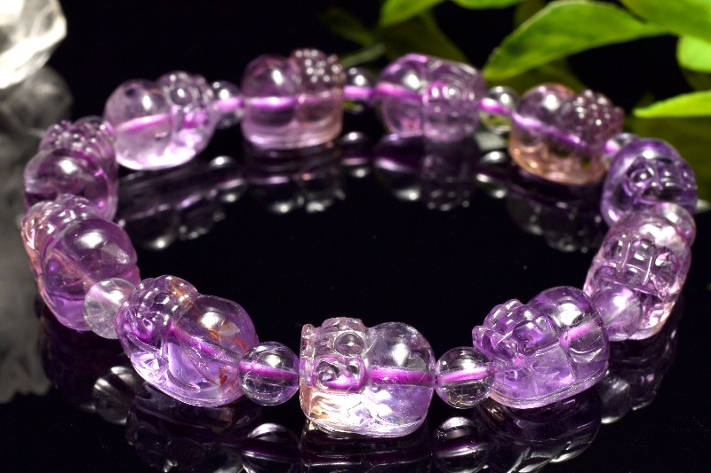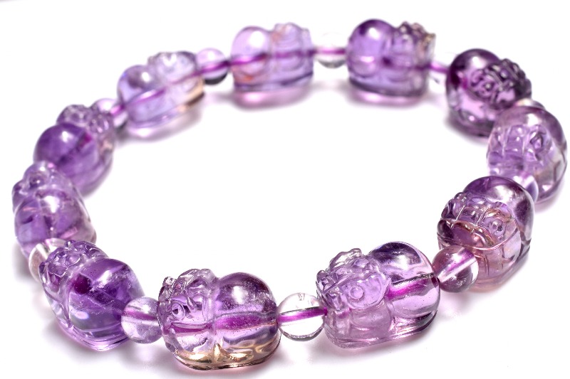 【1点物】繊細彫刻 アメトリン 11-12.5x8.5-9(丸玉5)mm 貔貅彫刻 ブレスレット _MA8331