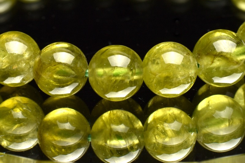珠サイズが揃ったオリーブグリーンの美しさが魅力的。
