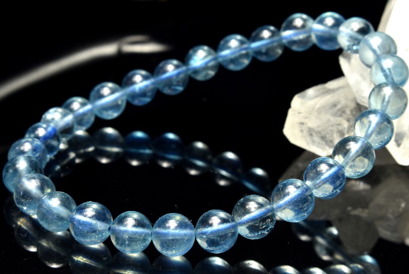 【1点物】AA+☆とろみシラー アクアマリン 7mm ブレスレット _MA8361