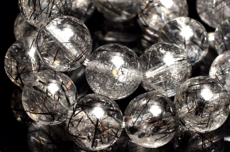 材質ブラックトルマリンインクォーツ 9mm 産地:ブラジル