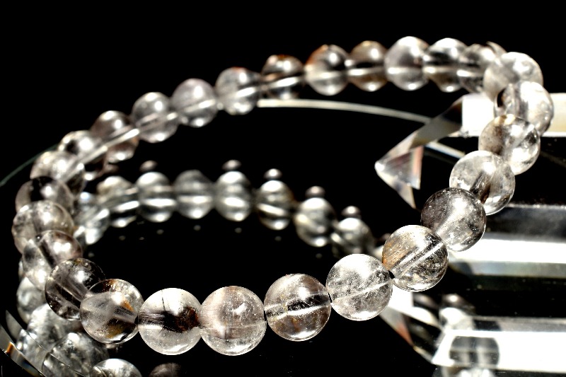【1点物】希少◇ブルッカイト入り プラチナタイチンルチルクォーツ 7mm ブレスレット _MA8432