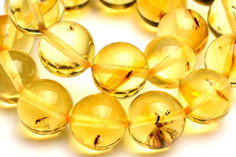 サイズ・種類も様々な昆虫が閉じ込められた天然琥珀のブレスレットです。